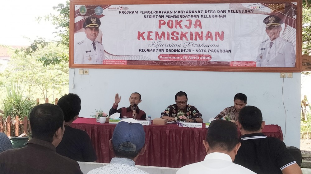 Digital Mandiri Petahunan — Upaya penanggulangan kemiskinan terus diperkuat melalui Kegiatan Pokja Kemiskinan Kelurahan Petahunan, Kecamatan Gadingrejo, Kota Pasuruan, yang digelar Kamis, 16 April 2026. Kegiatan ini menjadi forum strategis untuk menyamakan persepsi sekaligus meningkatkan akurasi data penerima bantuan sosial di tingkat kelurahan.