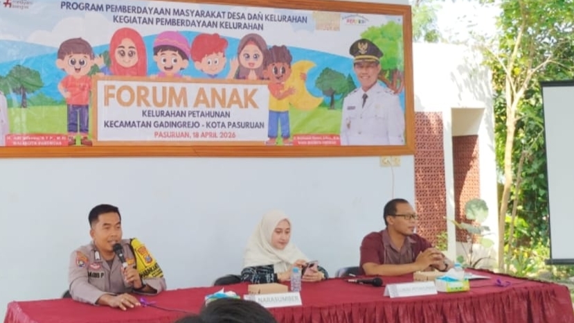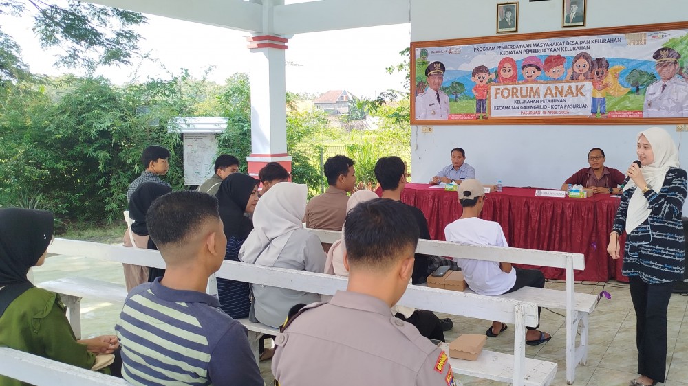 Digital Mandiri Petahunan – Upaya mewujudkan lingkungan ramah anak terus diperkuat melalui kegiatan Rapat Kelurahan Layak Anak yang digelar di Pendopo Kelurahan Petahunan, Kota Pasuruan, Sabtu (18/4/2026). Kegiatan ini menghadirkan narasumber dari Dinas Pemberdayaan Perempuan, Perlindungan Anak dan Keluarga Berencana Kota Pasuruan.